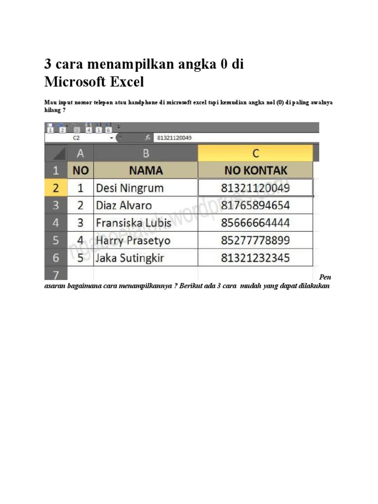 Mengetik Angka Nol di Depan pada Microsoft Excel - Dryan Christoph …