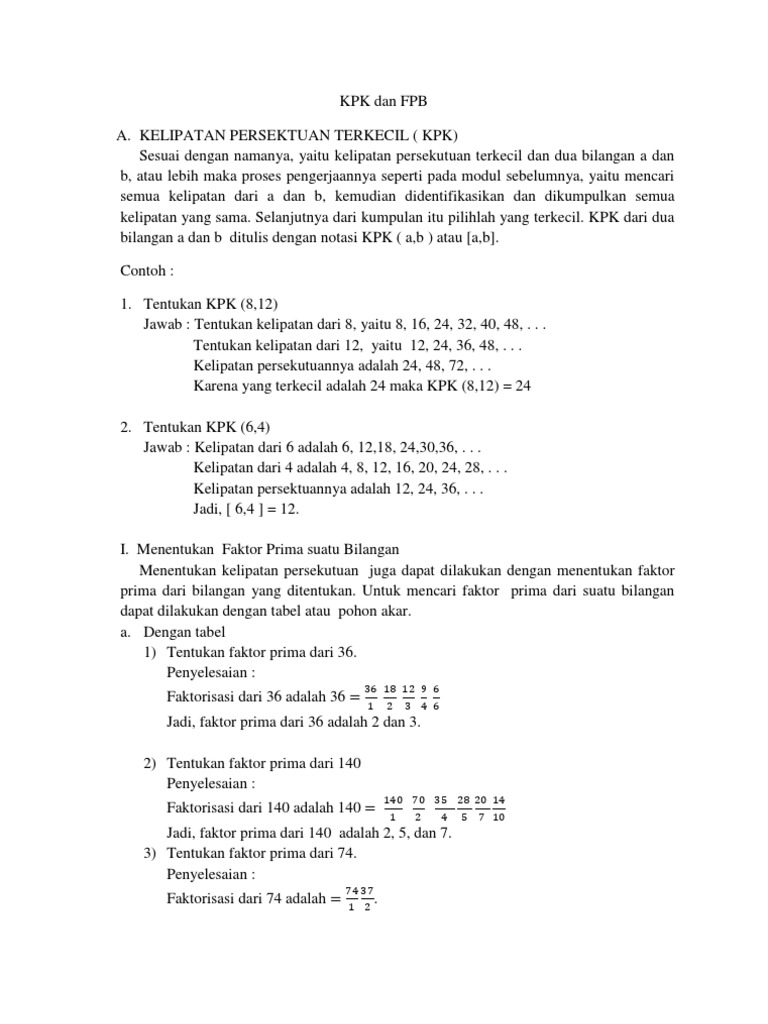 Rangkuman dan Soal Matematika: FPB dan KPK, Materi Belajar dari …