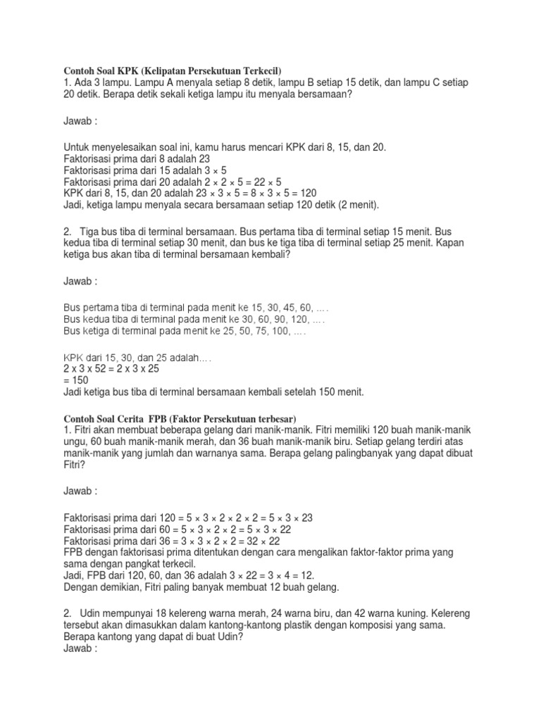 √ KPK dan FPB: Penjelasan dan Contoh Soal LENGKAP …