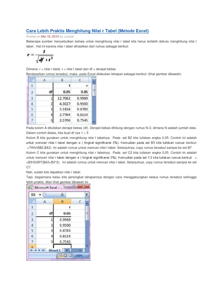 Cara Lebih Praktis Menghitung Nilai r Tabel (Metode Excel): Posted on by Junaidi