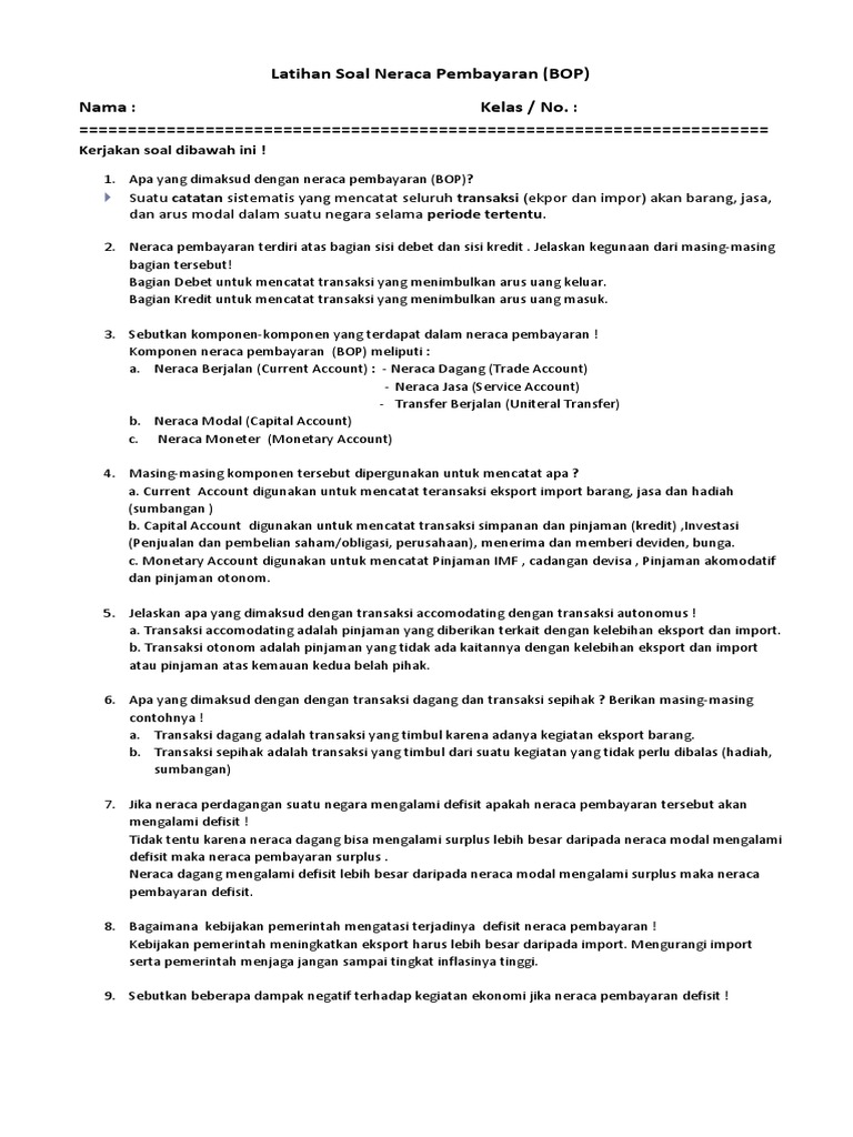 Contoh soal neraca pembayaran dan devisa tanpa pembahasan - Guru Baru