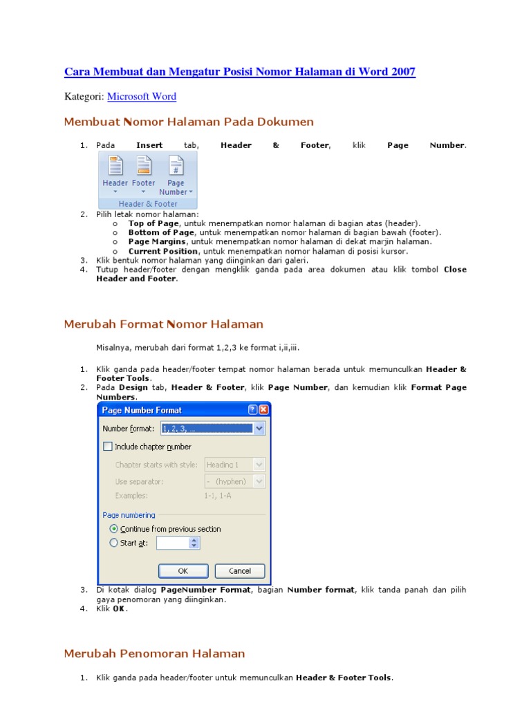Cara Membuat Dan Mengatur Posisi Nomor Halaman Di Word 2007 - [DOC …