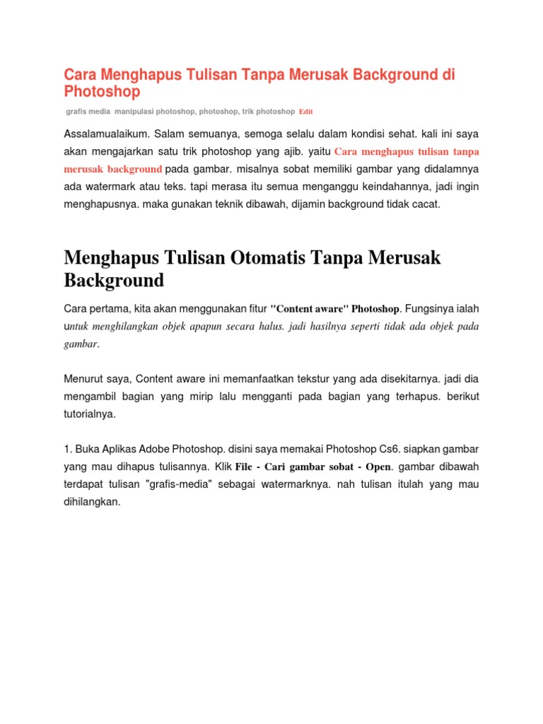 Cara Menghapus Tulisan Di Photoshop Cs6 Tanpa Menghapus Background