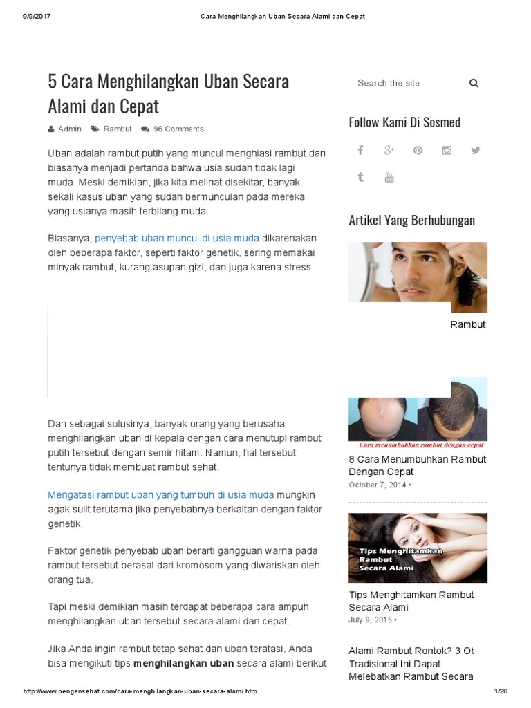 UBAN LANGSUNG HILANG! Ini Dia Cara Mengatasi & Mengobati Uban Di …