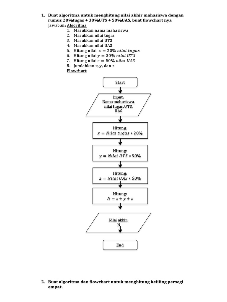1. Buat algoritma untuk menghitung nilai akhir mahasiswa dengan …