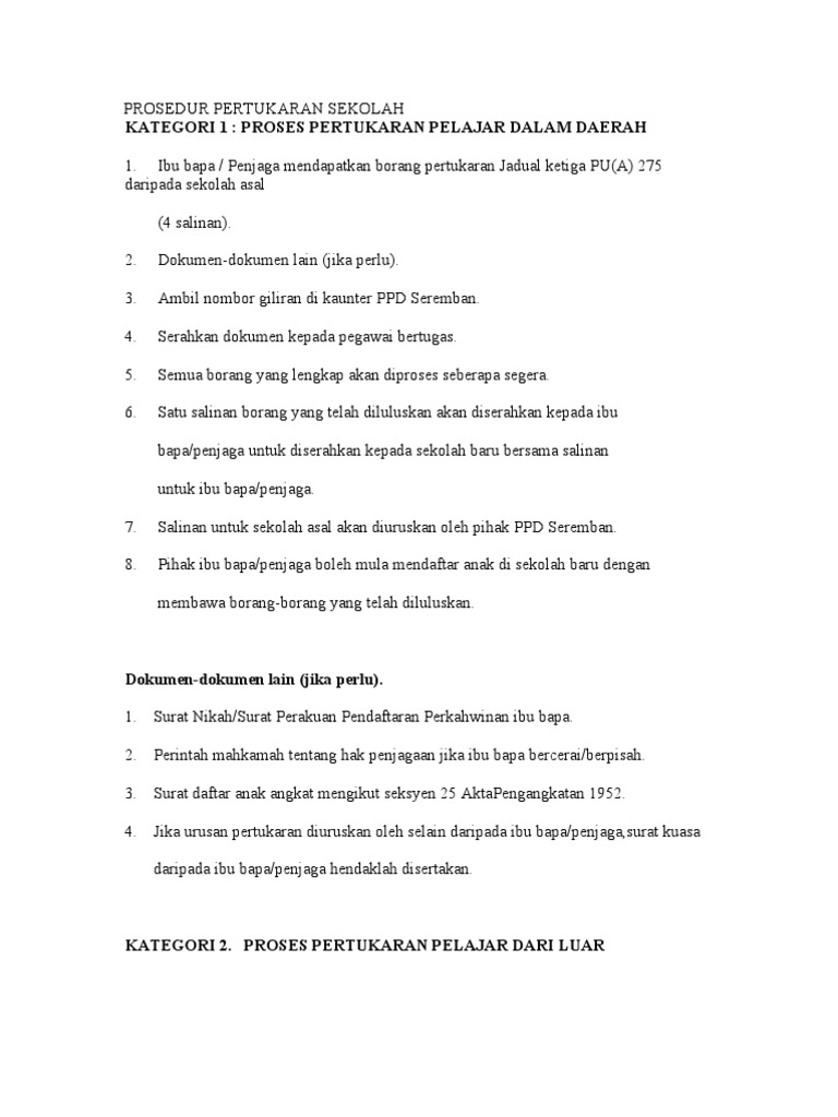 PROSEDUR PERTUKARAN SEKOLAH
