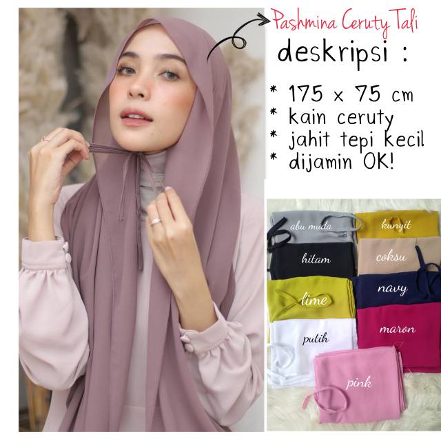 PASHMINA INSTAN CERUTY TALI/KERUDUNG PASHMINA/HIJAB INSTAN …