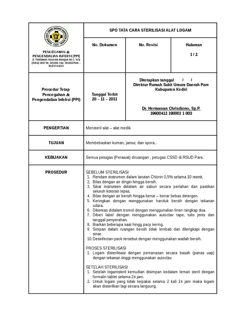 Spo Tata Cara Sterilisasi Alat Logam