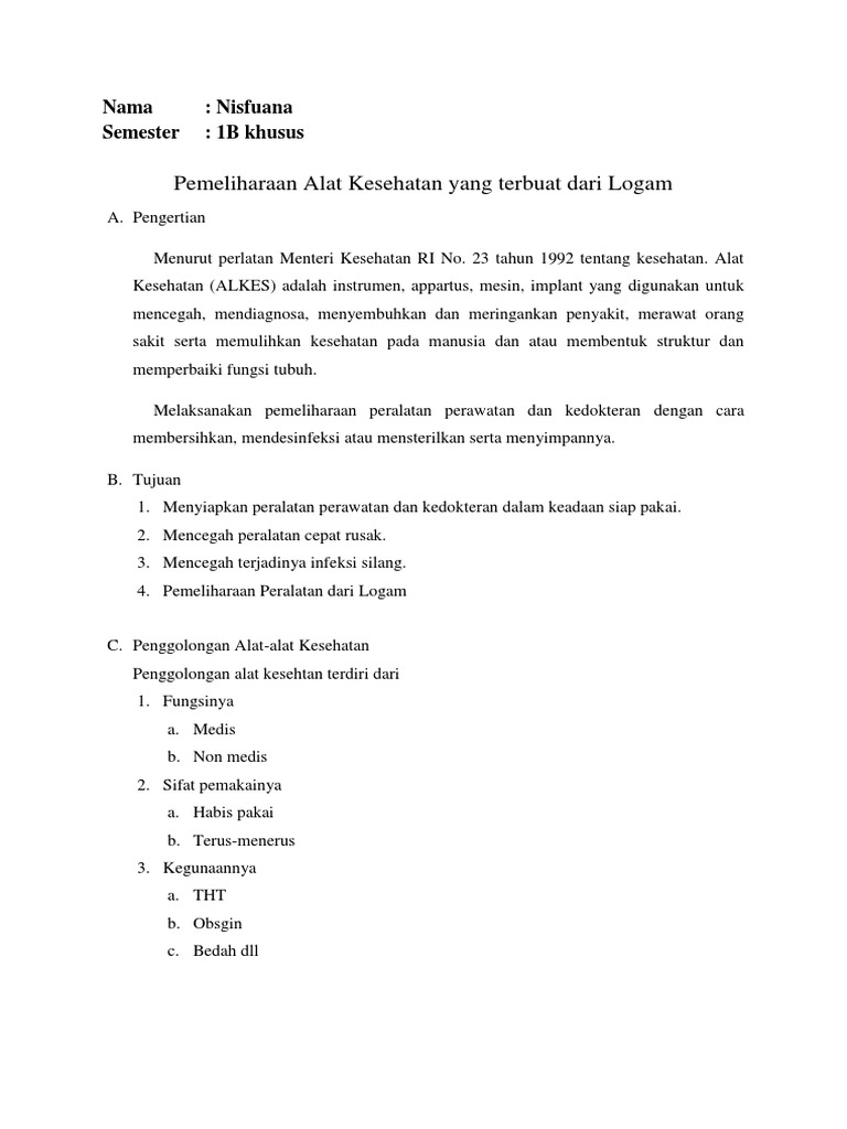 Pemeliharaan Alat Kesehatan yang terbuat dari Logam: Nama …