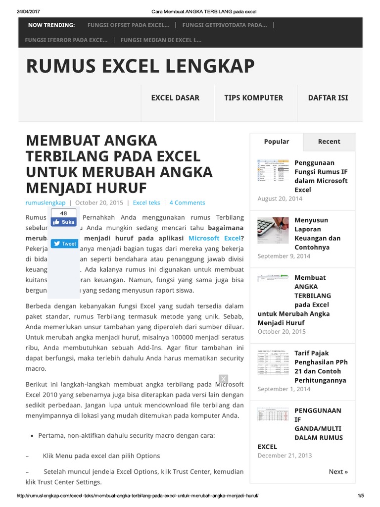Cara Merubah Angka Menjadi Hurup Terbilang Pada Microsoft Excel