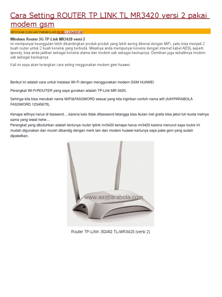 Cara Setting ROUTER TP LINK TL MR3420 versi 2 pakai modem gsm.docx
