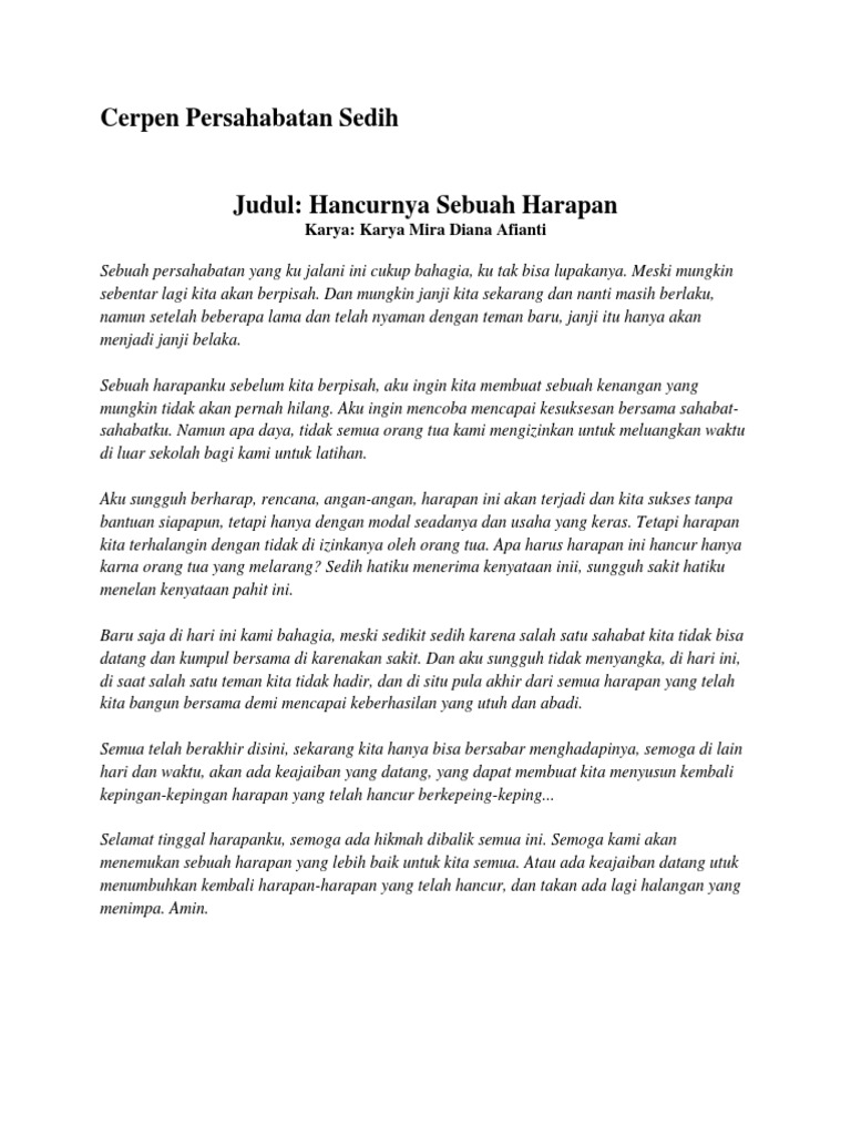 Cerpen Persahabatan Sedih: Karya: Karya Mira Diana Afianti