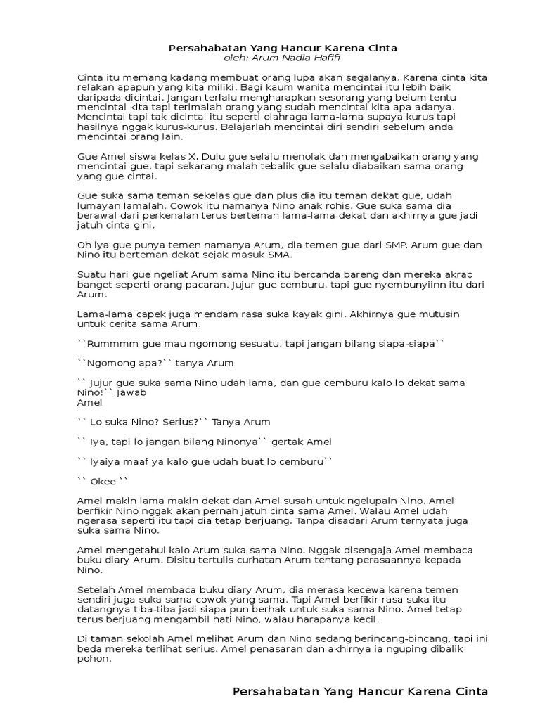 Persahabatan Yang Hancur Karena Cinta oleh: Arum Nadia Hafifi Cinta itu memang kadang membuat orang - Brainly.co.id