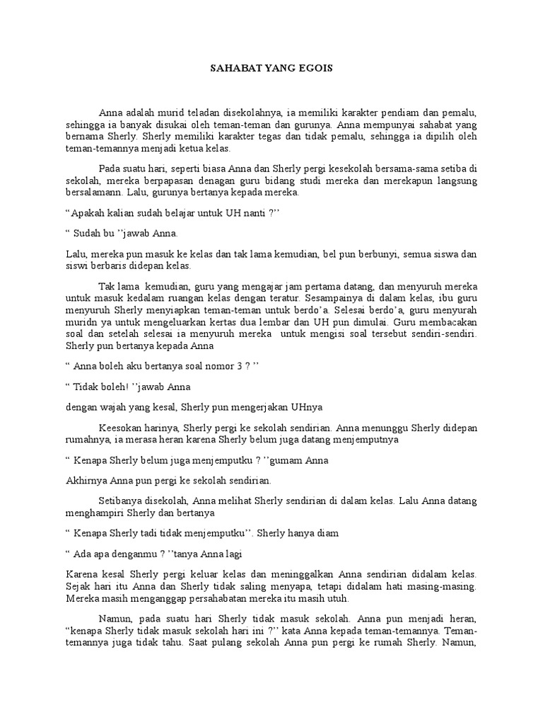 Cerpen Sahabat Yang Egois