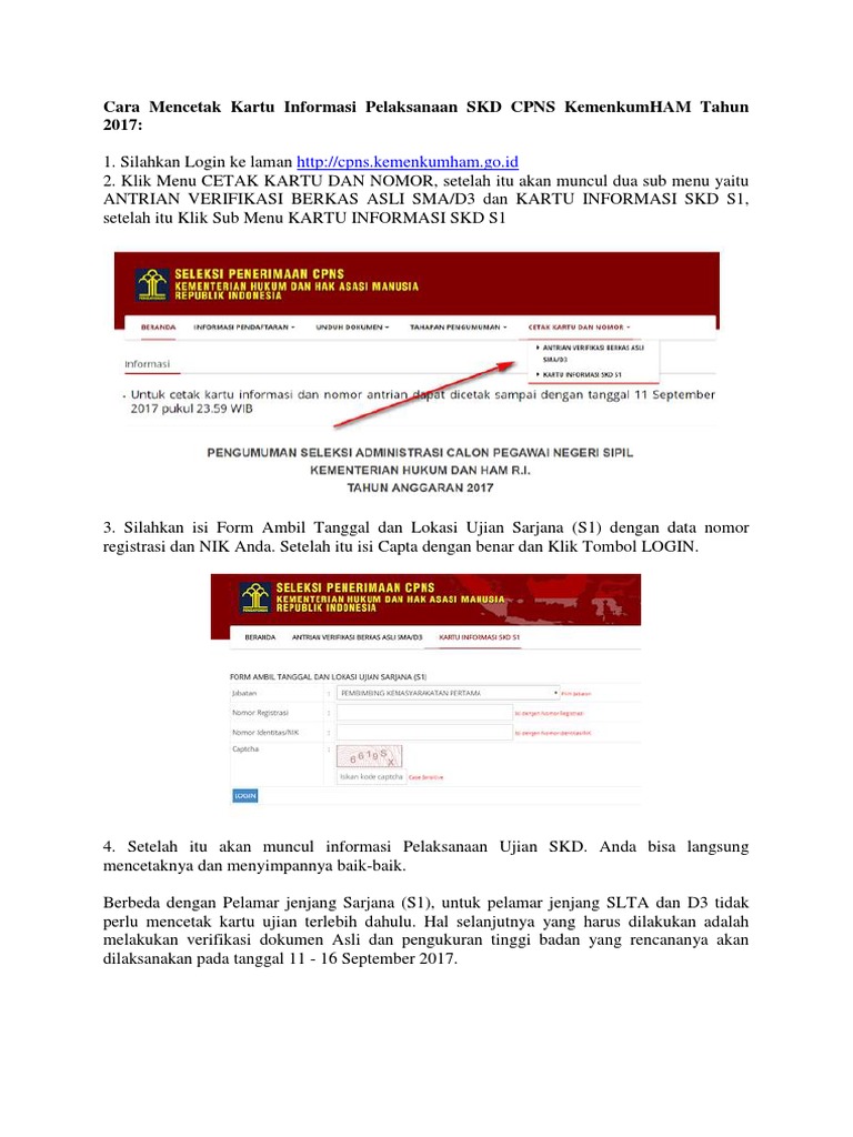 Cara Mencetak Kartu Informasi Pelaksanaan Skd Cpns Kemenkumham …