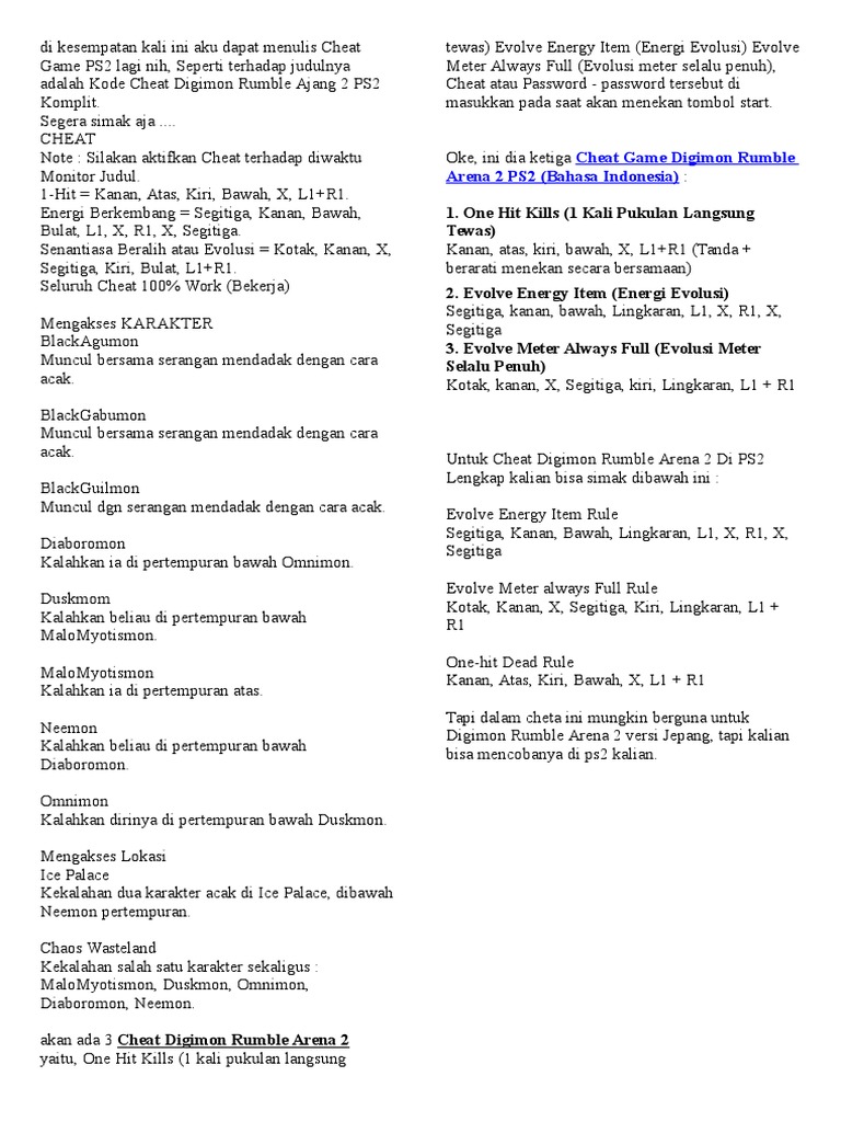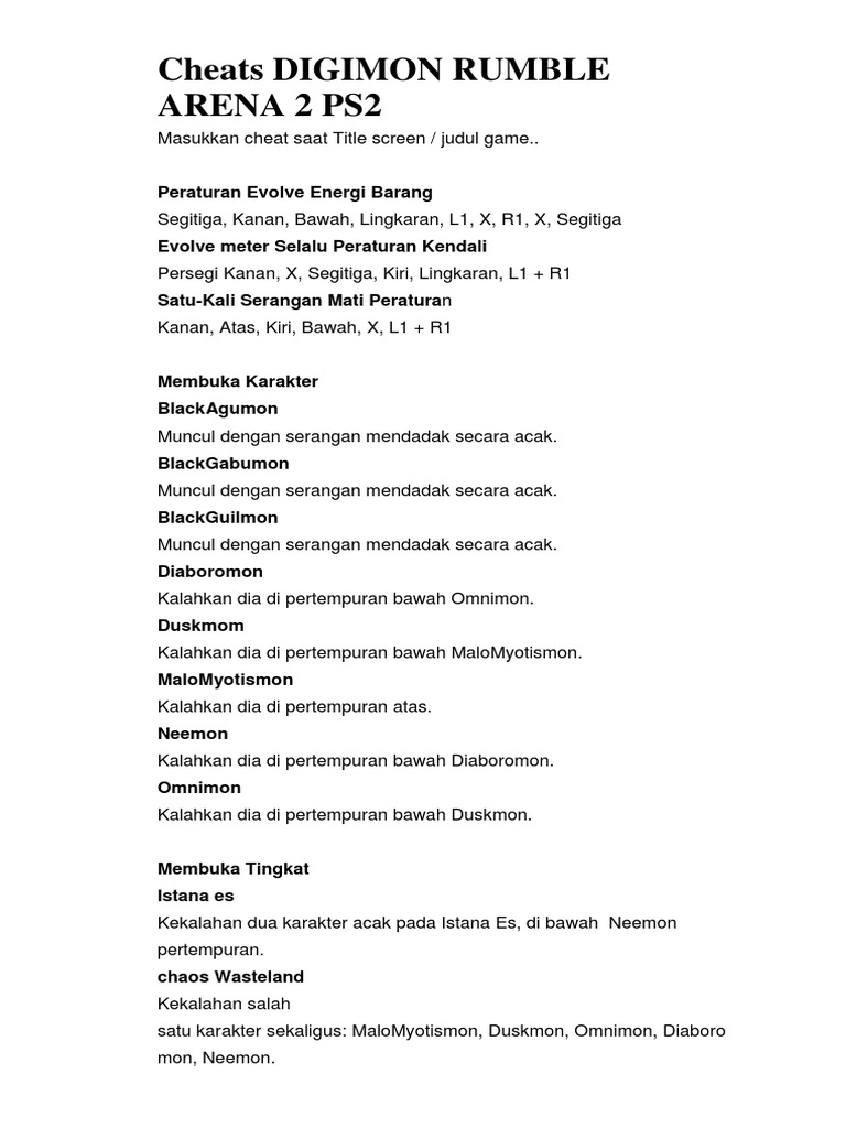 Cheat Digimon Rumble Arena 2 PS2 Lengkap Bahasa Indonesia …