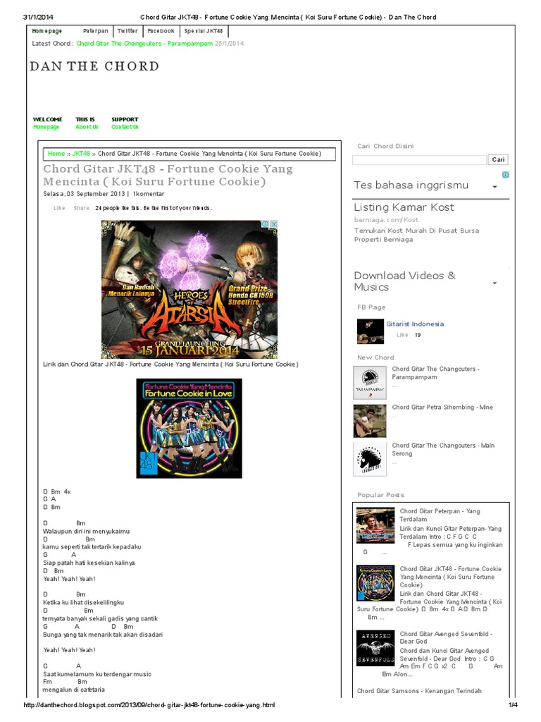 Chord Gitar JKT48 - Fortune Cookie Yang Mencinta ( Koi Suru Fortune Cookie) - Dan the Chord