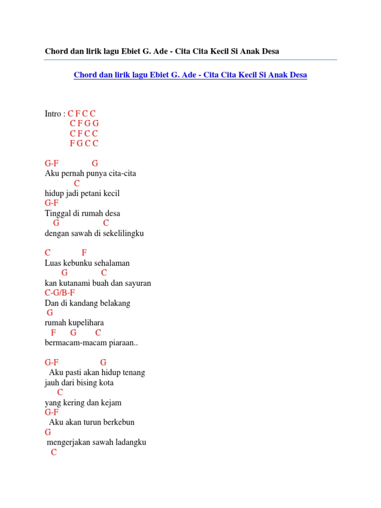 Cita Cita Kecil Si Anak Desa CHORDS by Ebiet G. Ade | ChordBand.com