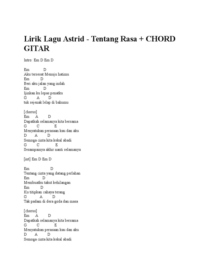 Lirik Lagu Astrid - Tentang Rasa + CHORD