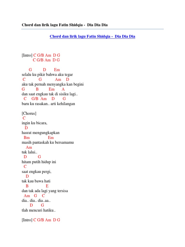 Kunci Gitar Dia Dia Dia - Fatin Shidqia (Dengan gambar) | Gitar, Kunci gitar