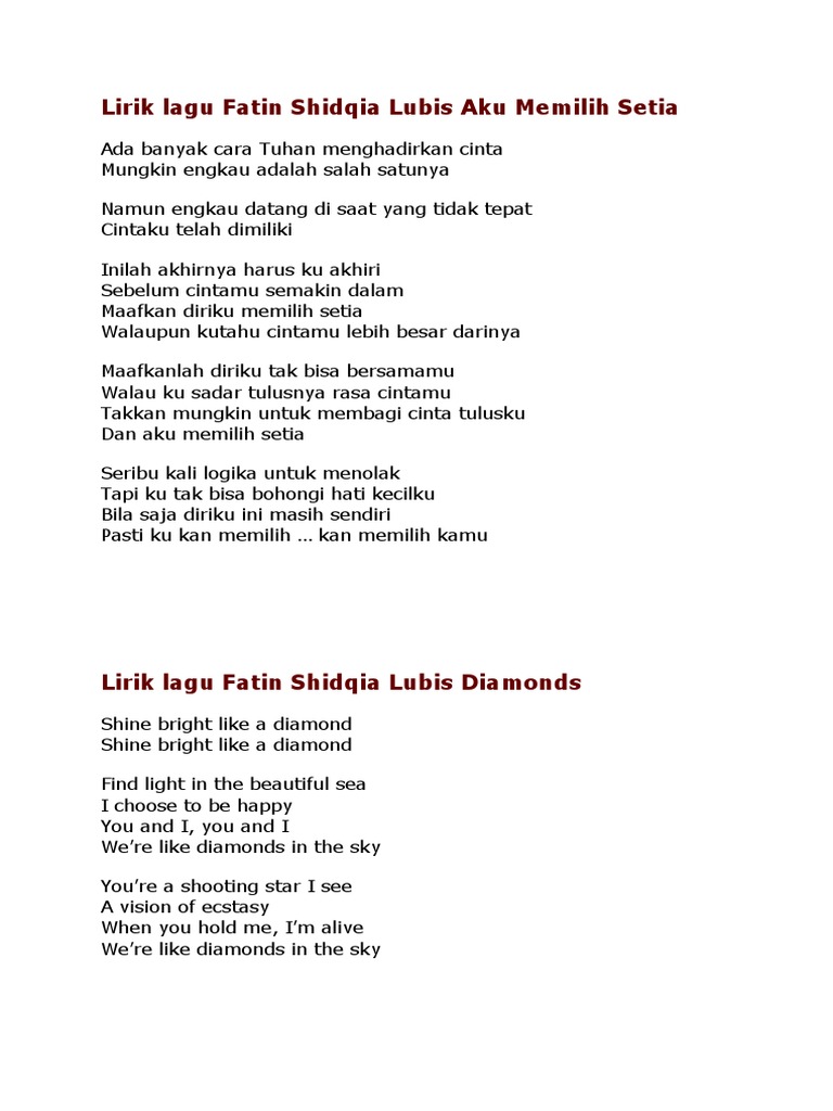 Lirik Lagu Fatin Shidqia Lubis Aku Memilih Setia | Entertainment (General) | Leisure