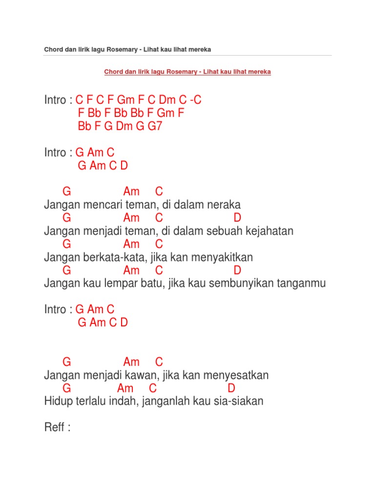 Chord Dan Lirik Lagu Rosemary - Lihat Kau Lihat Mereka
