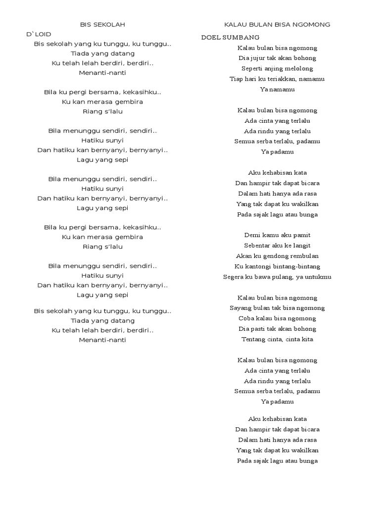 Teks Lagu Kalau Bulan Bisa Ngomong - Berbagai Teks Penting