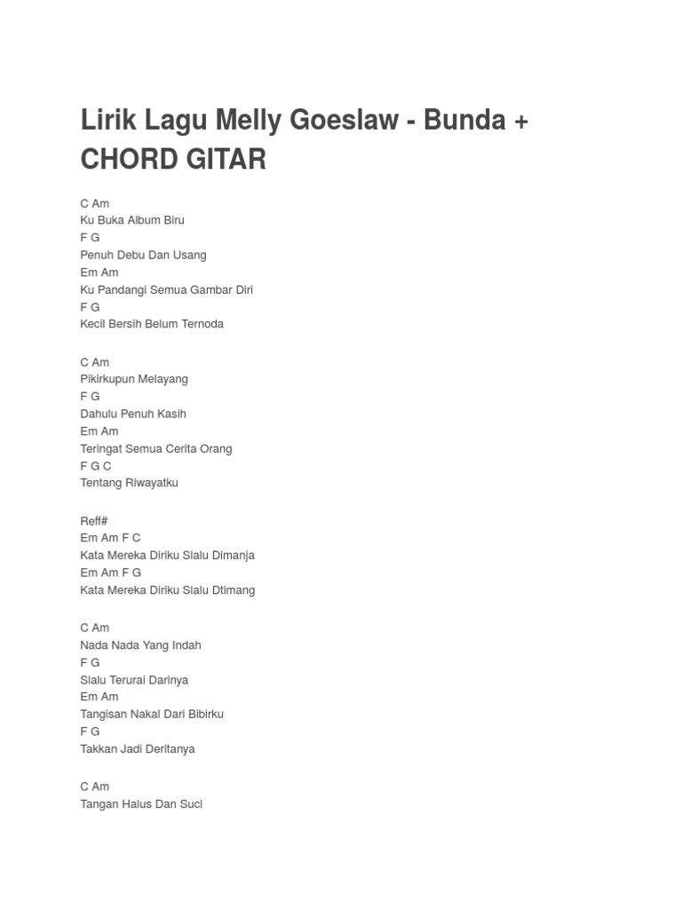 Kunci (Chord) Gitar Bunda - Melly Goeslaw, Paling Mudah Pakai …