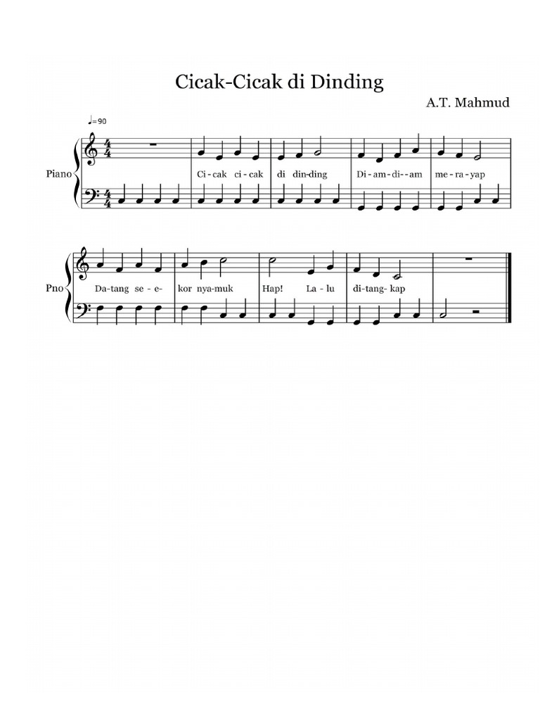 Sheet Music of Cicak - Cicak Di Dinding - Indonesian Children’s …