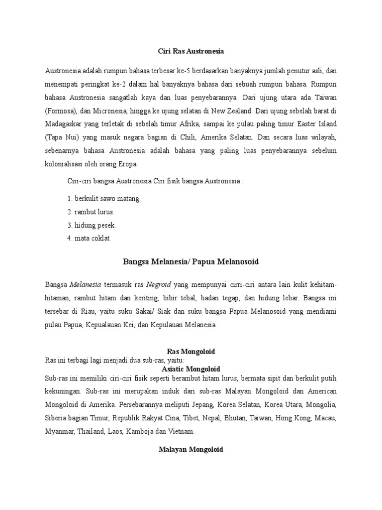 ciri-ciri ras asiatic mongoloid,malayan mongoloid,melanesoid,dan …