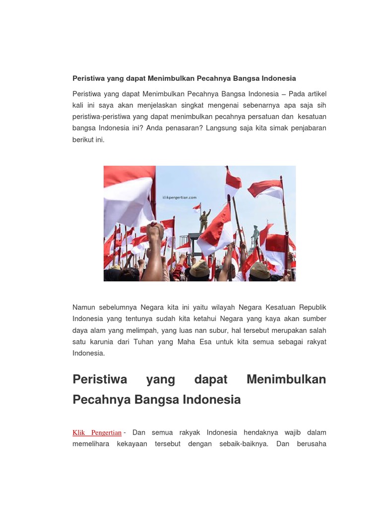 Peristiwa yang dapat Menimbulkan Pecahnya Bangsa Indonesia - Pengertian, Contoh, dan Manfaat | Klik Pengertian