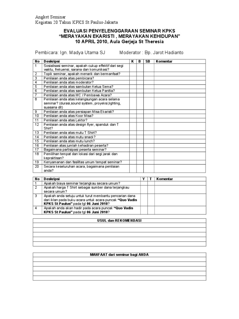 Form Kuesioner Evaluasi Kegiatan Seminar - [PDF Document]