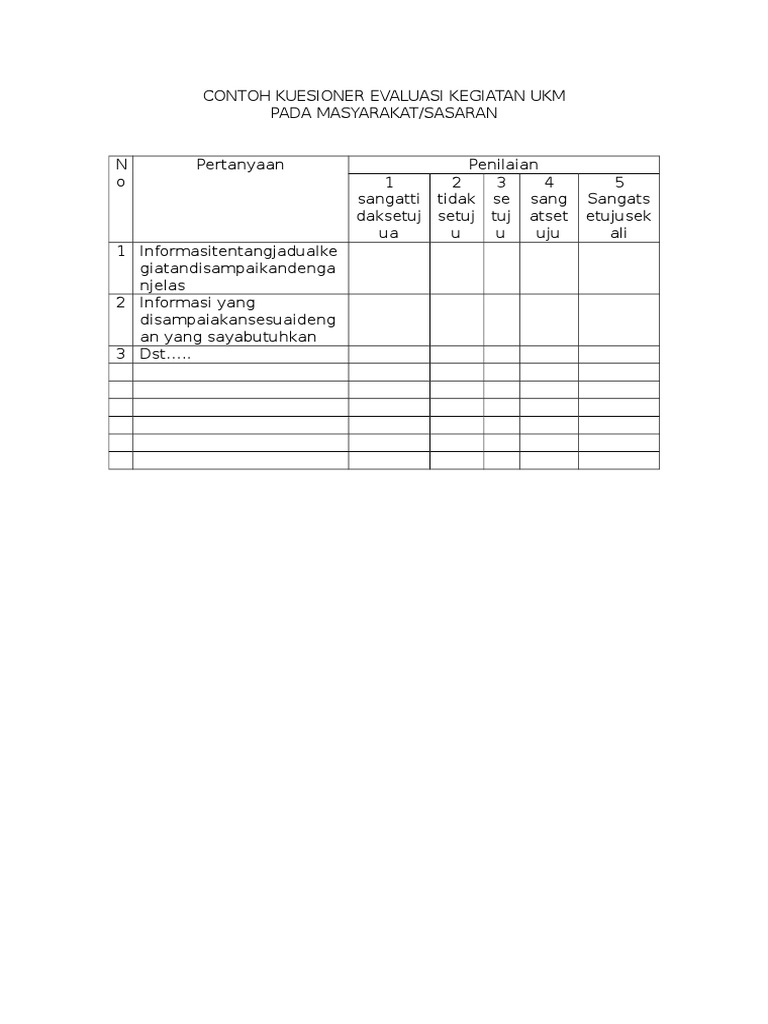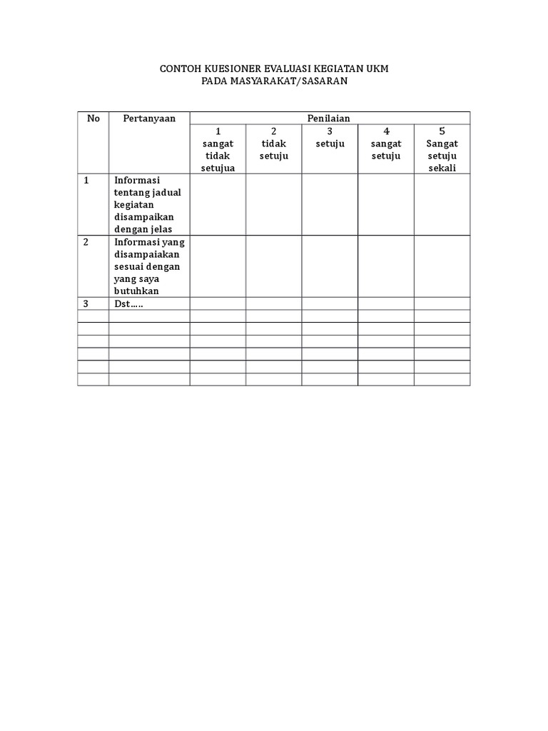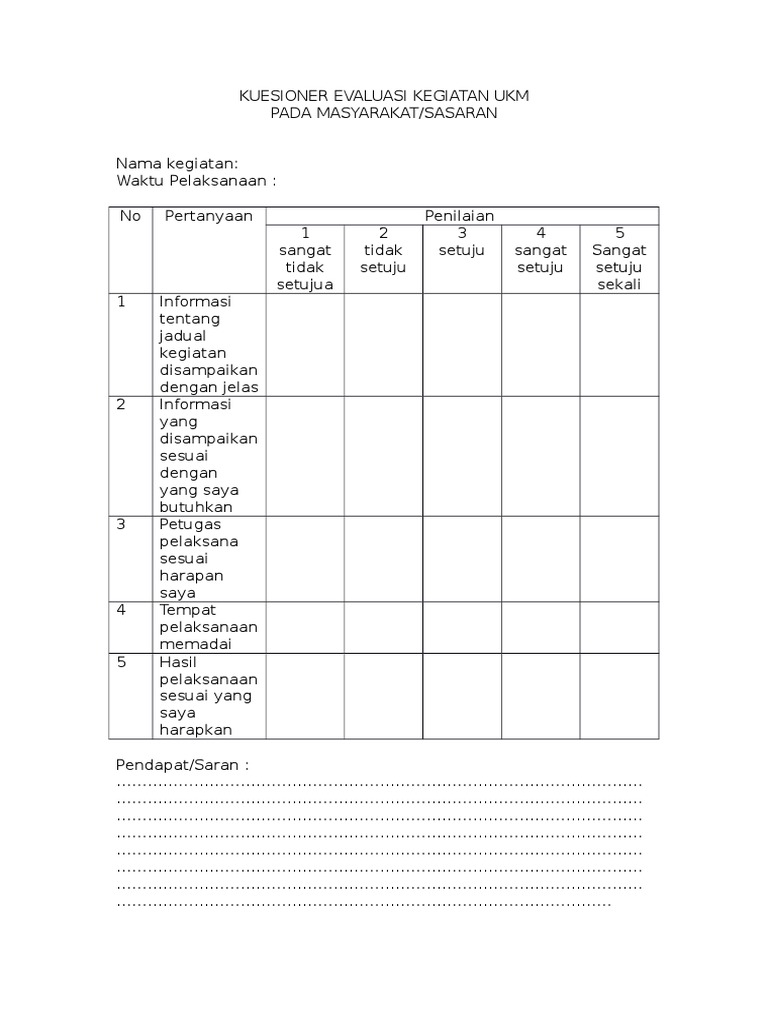 DOC) CONTOH KUESIONER EVALUASI KEGIATAN UKM | Agus Saputra …