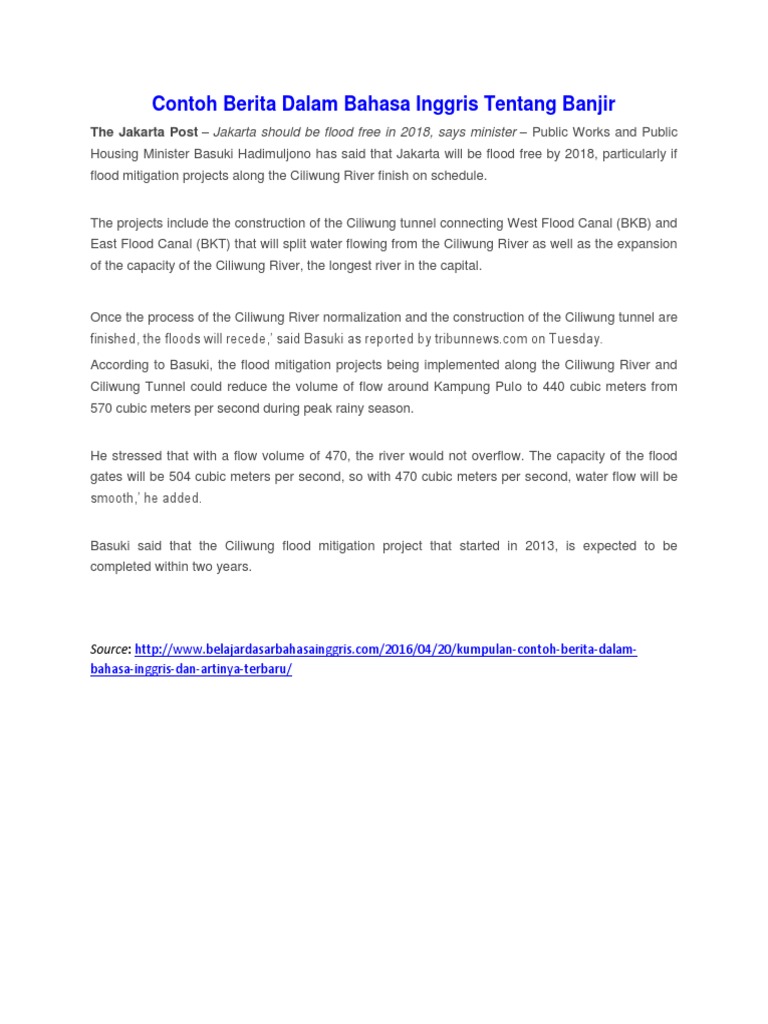 2 Contoh Teks Berita Banjir Dalam Bahasa Inggris Dan Terjemahannya …