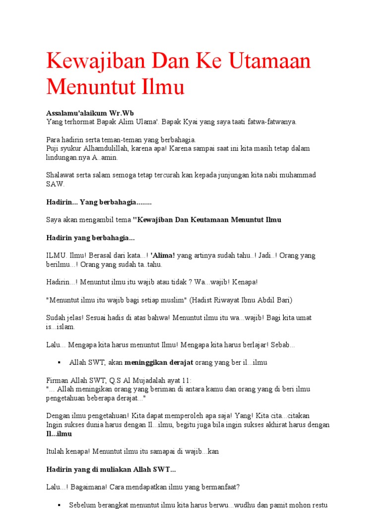 DOC) PIDATO KEUTAMAAN MENUNTUT ILMU | Naila N.K - Academia.edu