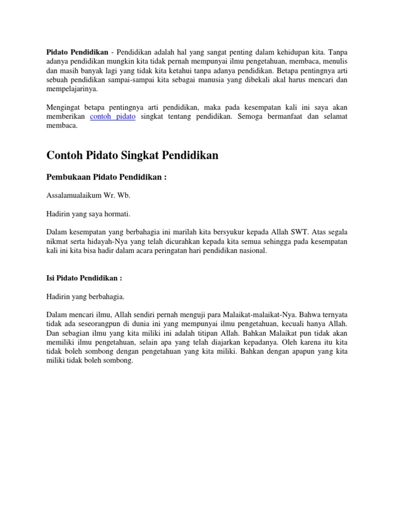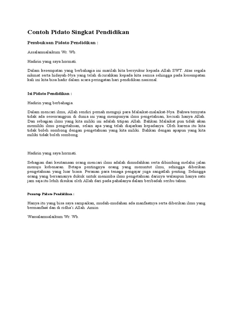 Contoh Pidato Singkat Pendidikan docx