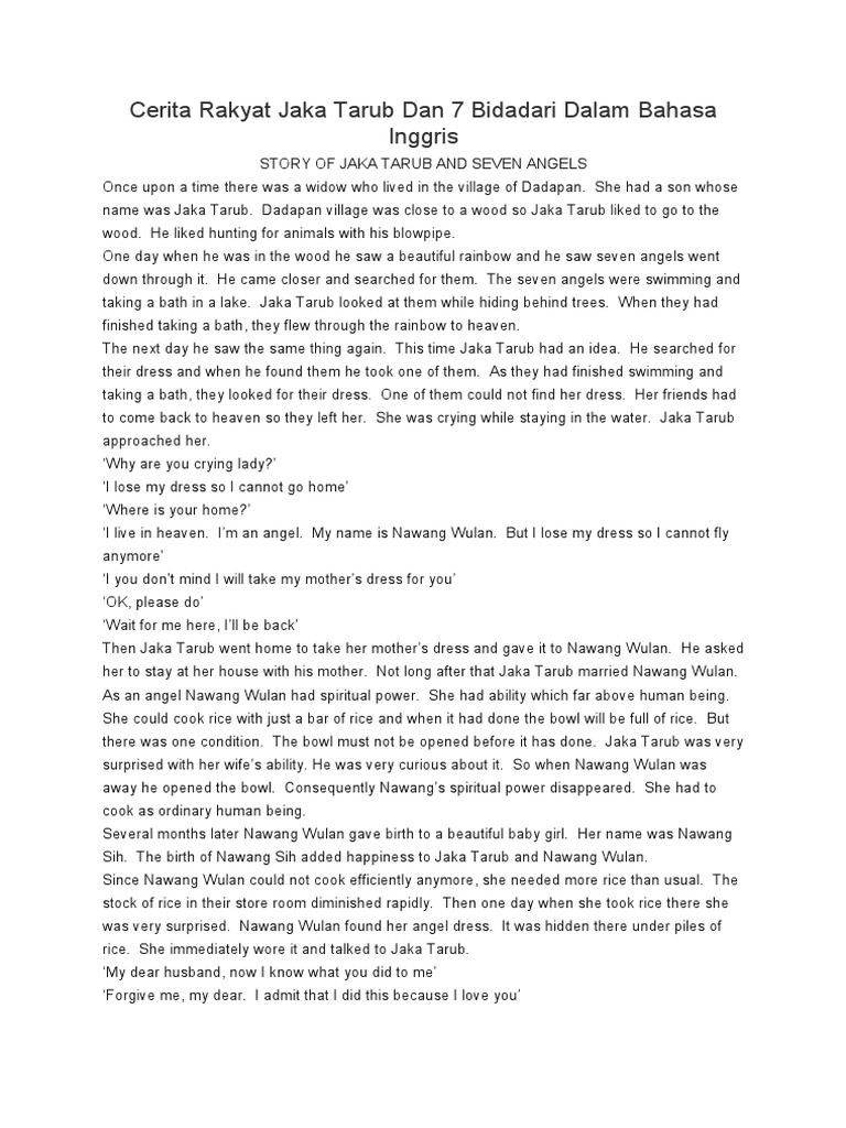 Cerita Rakyat Jaka Tarub Dan 7 Bidadari Dalam Bahasa Inggris Dan …