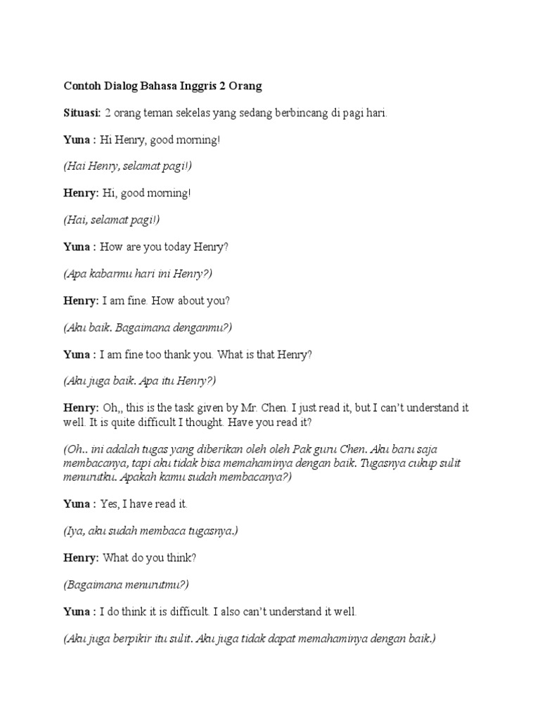 Contoh Dialog Bahasa Inggris Singkat 2 Orang Contoh Karet - Cute766