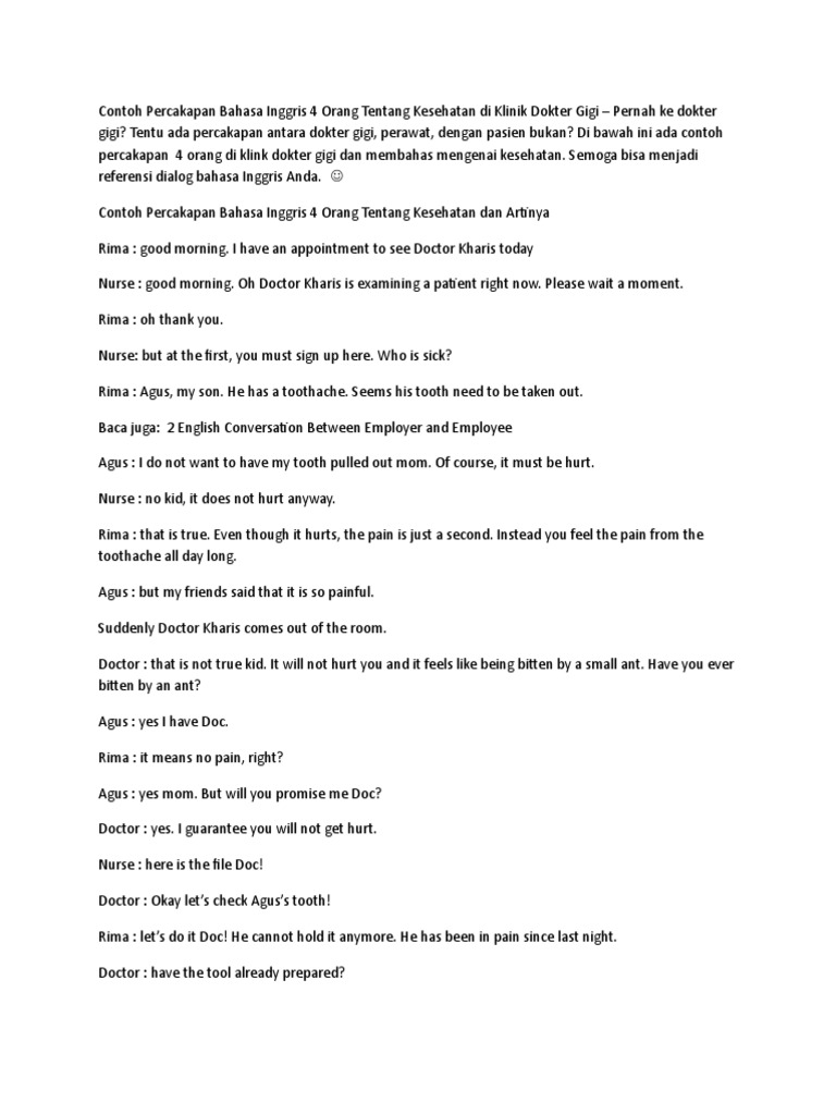 Percakapan Dalam Bahasa Inggris Untuk 4 Orang Tentang Kesehatan …