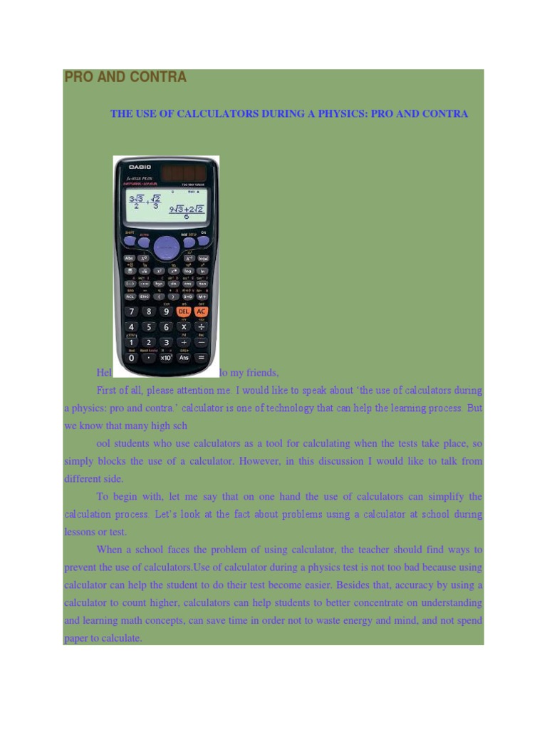 The Use Of Calculators During A Physics: Pro And Contra | Tobacco …