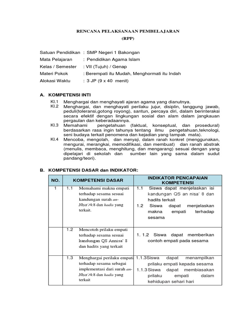 Rpp bab empati dan menghormati