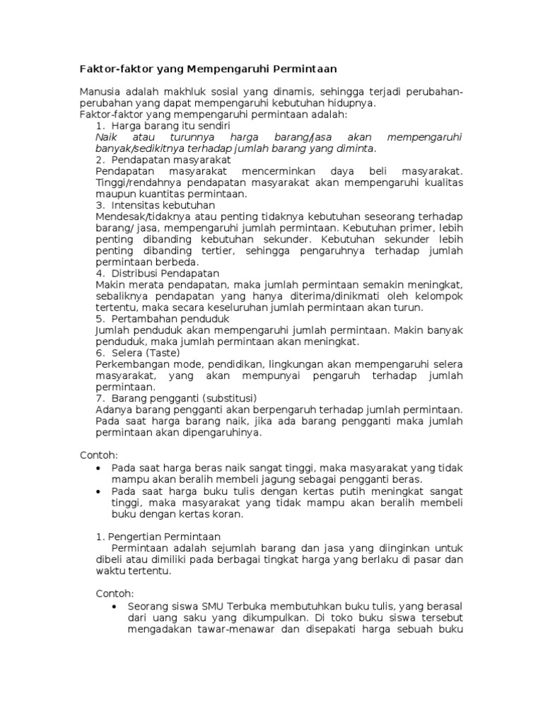 Contoh Faktor Yang Mempengaruhi Permintaan