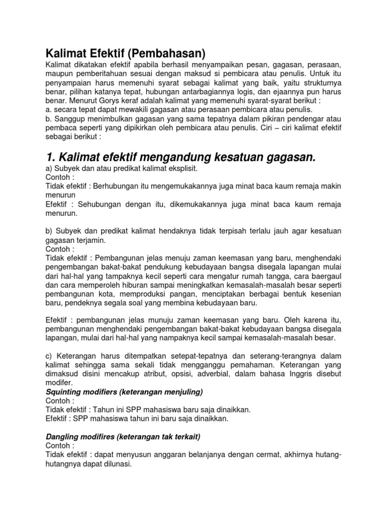 Kalimat efektif adalah kalimat yang dapat mengungkapkan gagasan pemakainya | Course Hero