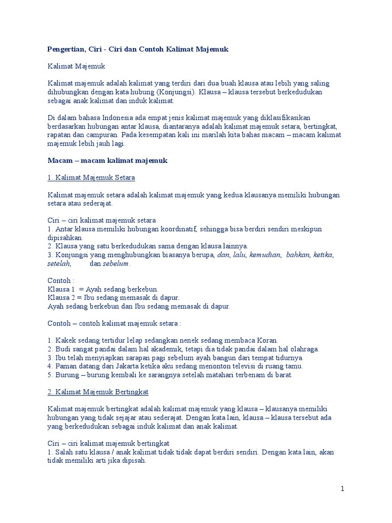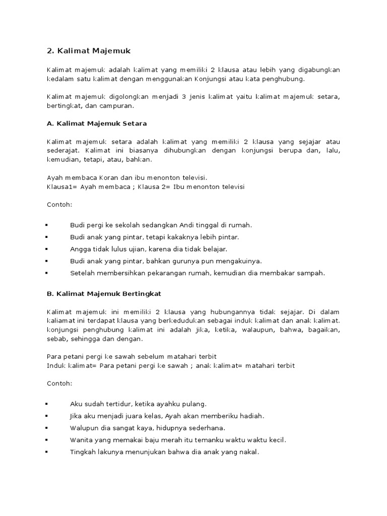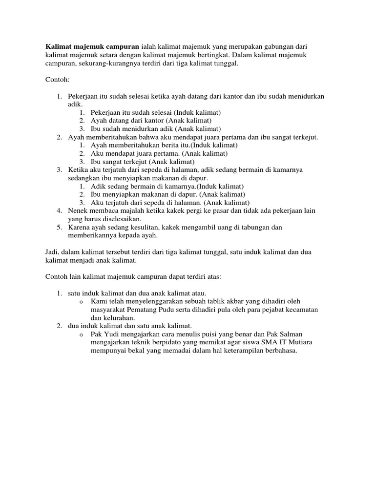 Contoh Kalimat Majemuk Setara Bertingkat Dan Campuran – Berbagai …