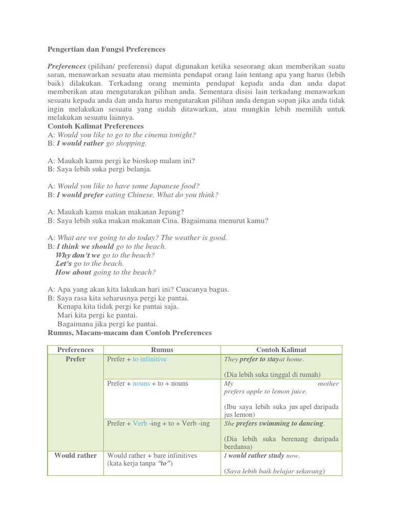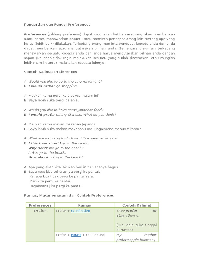 4 Jenis Preference: Penjelasan, Fungsi dan Contoh Kalimatnya - Dimensi Bahasa Inggris