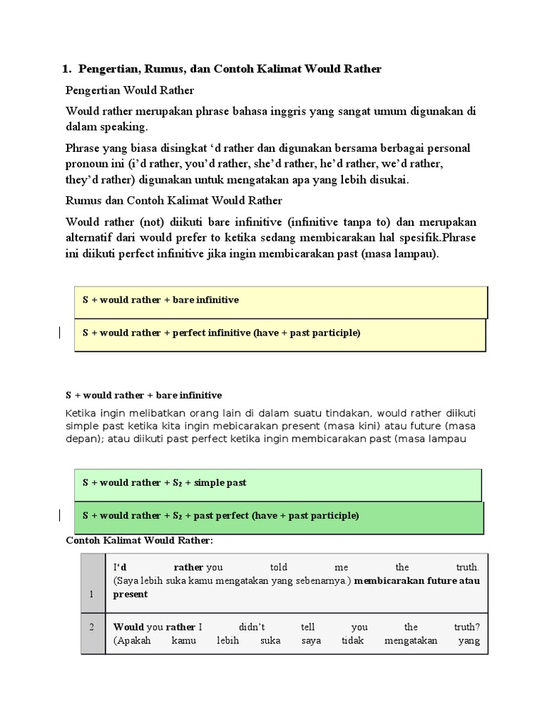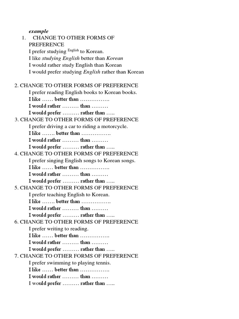 Contoh kalimat preference would rather – English Class