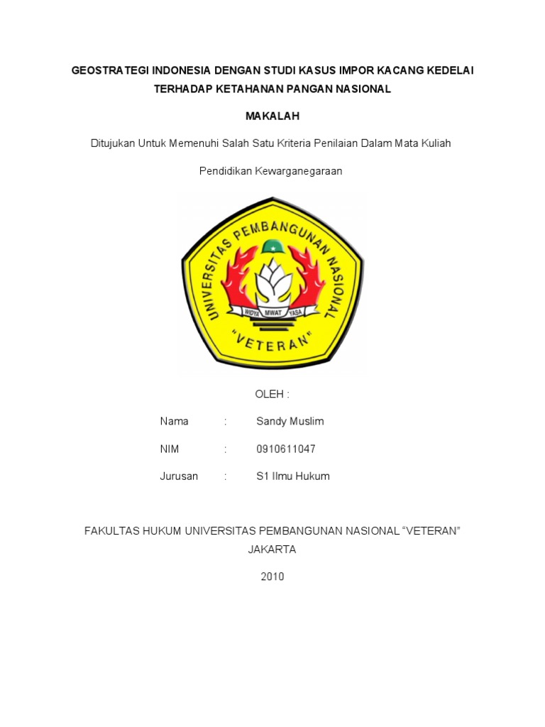 Geostrategi Indonesia Dengan Studi Kasus Impor Kacang Kedelai …