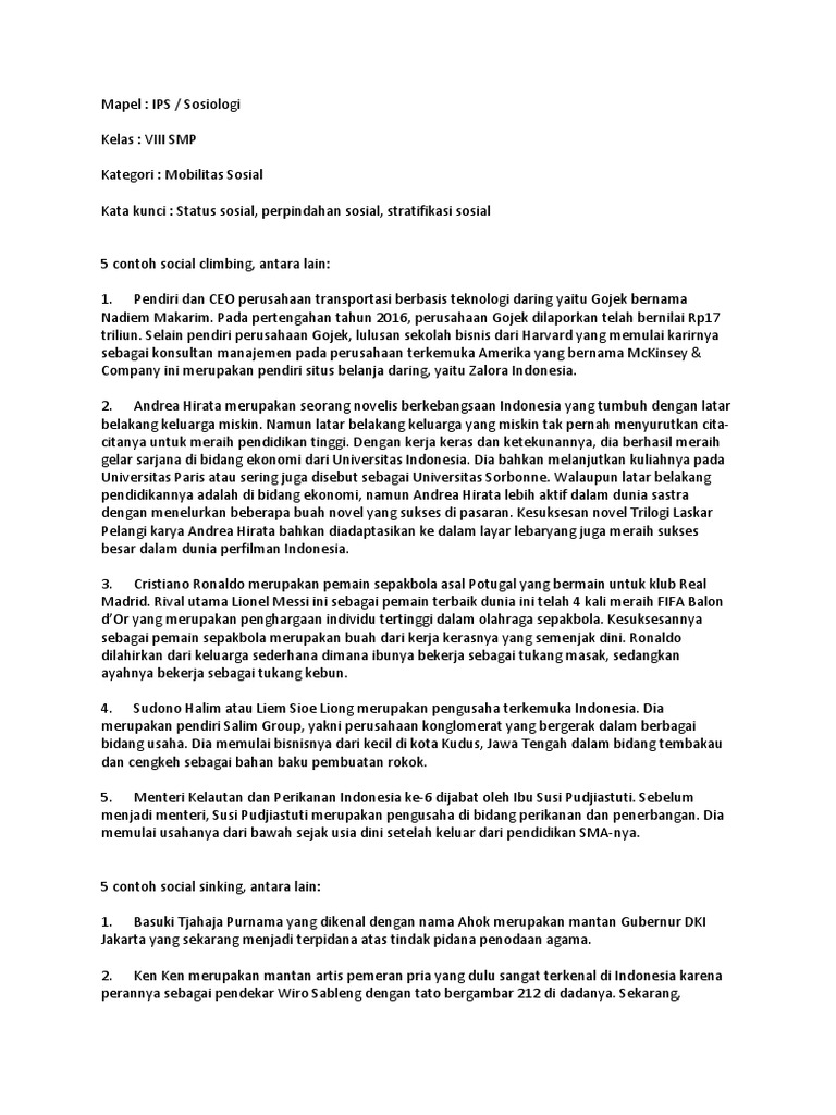Contoh Kasus Mobilitas Sosial Di Masyarakat - Barisan Contoh
