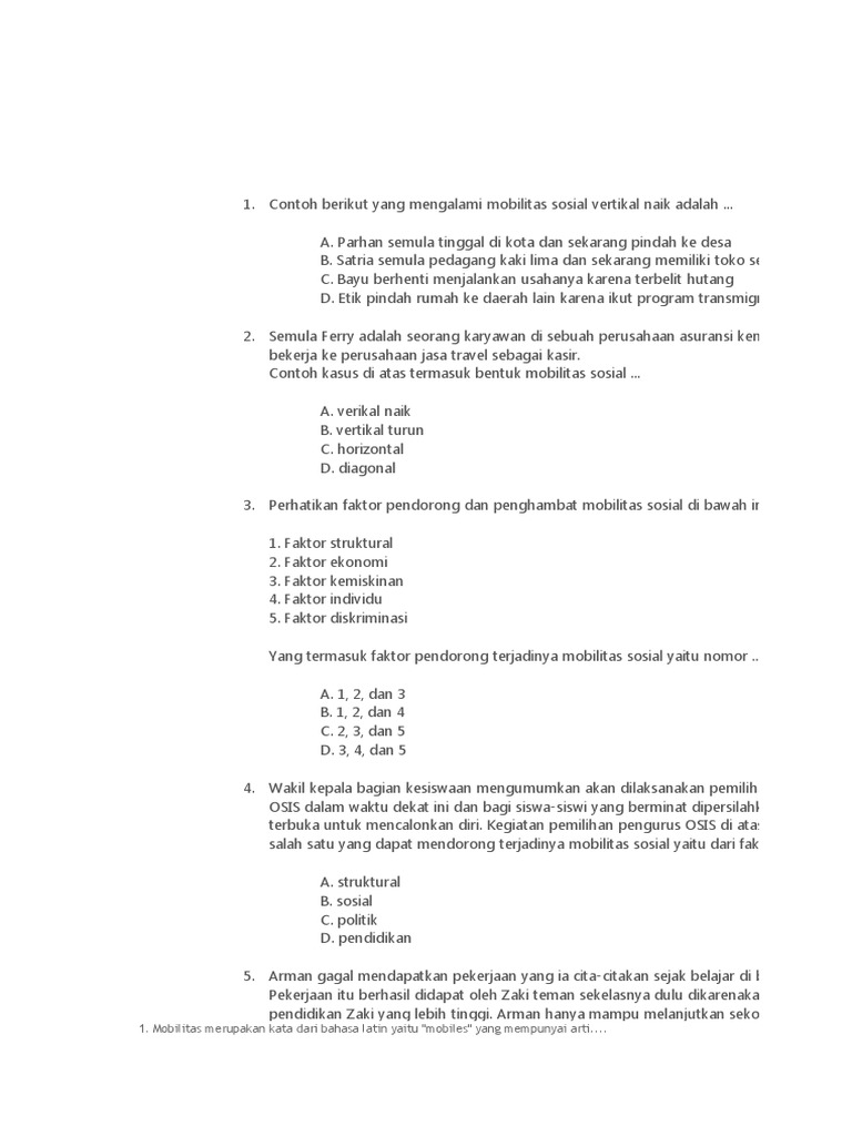 Contoh soal UN mobilitas sosial dan jawabannya – Soalfismat.com