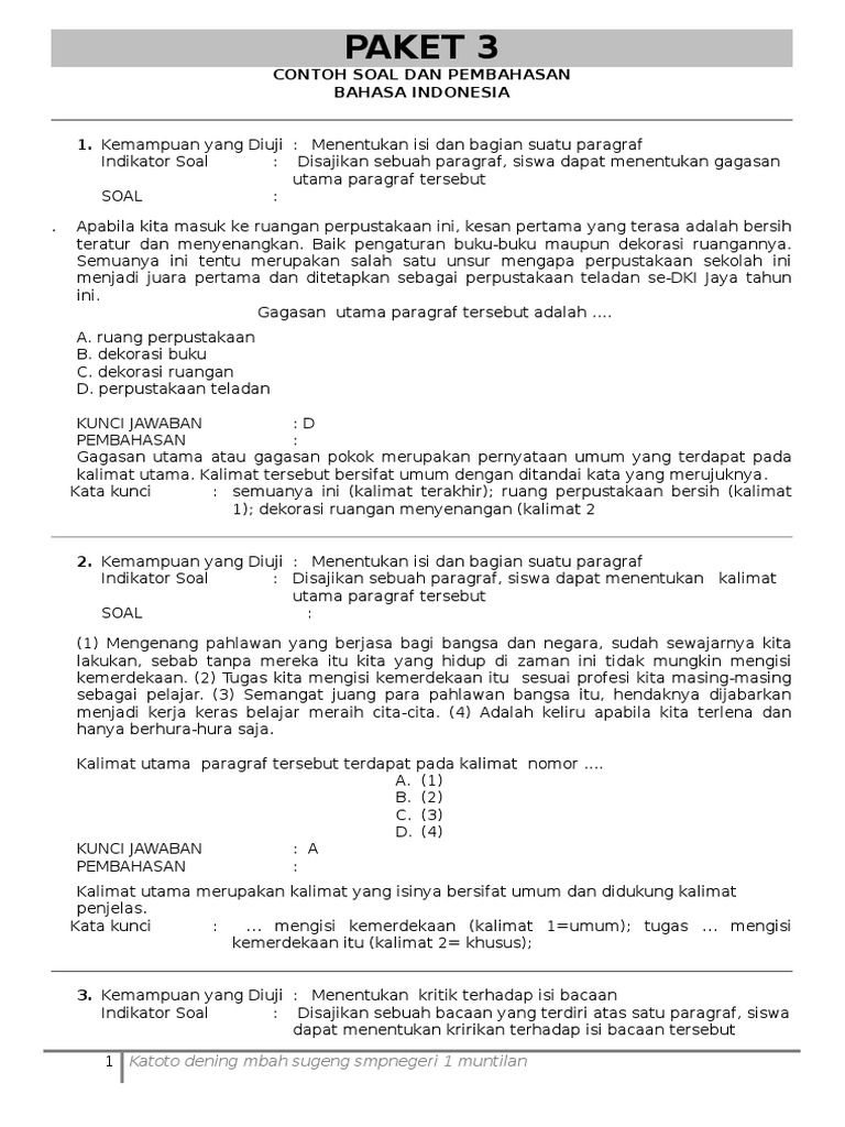 Contoh Soal B. Idonesia PAKET 3 - [DOC Document]